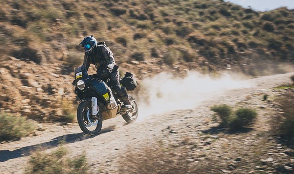 - Equipamento de condução off-road ou de aventura, roupas impermeáveis e mochila de hidratação.