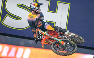 O dia de domingo elevou ainda mais a exigência. A chuva que caiu durante a noite transformou o percurso em um verdadeiro desafio de lama e tração, com três voltas em uma pista próxima a 30 quilômetros para os pilotos da categoria Pro. Desde a largada, García aproveitou sua posição privilegiada para assinar o holeshot e marcar o ritmo desde a primeira volta, ciente de que uma boa largada seria fundamental nessas condições. “Hoje, na corrida principal de domingo, a chave era sair bem, porque com a lama era fundamental”, explicou o piloto catalão.