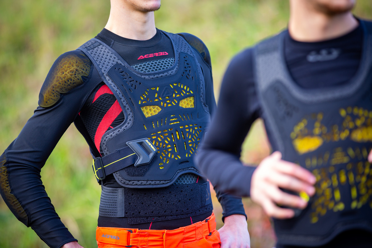 O protetor de peito Acerbis Plasma 2.0 também é compatível com cintas de pescoço, coleiras cervicais e outros sistemas de proteção e está disponível a um preço de €199,95.